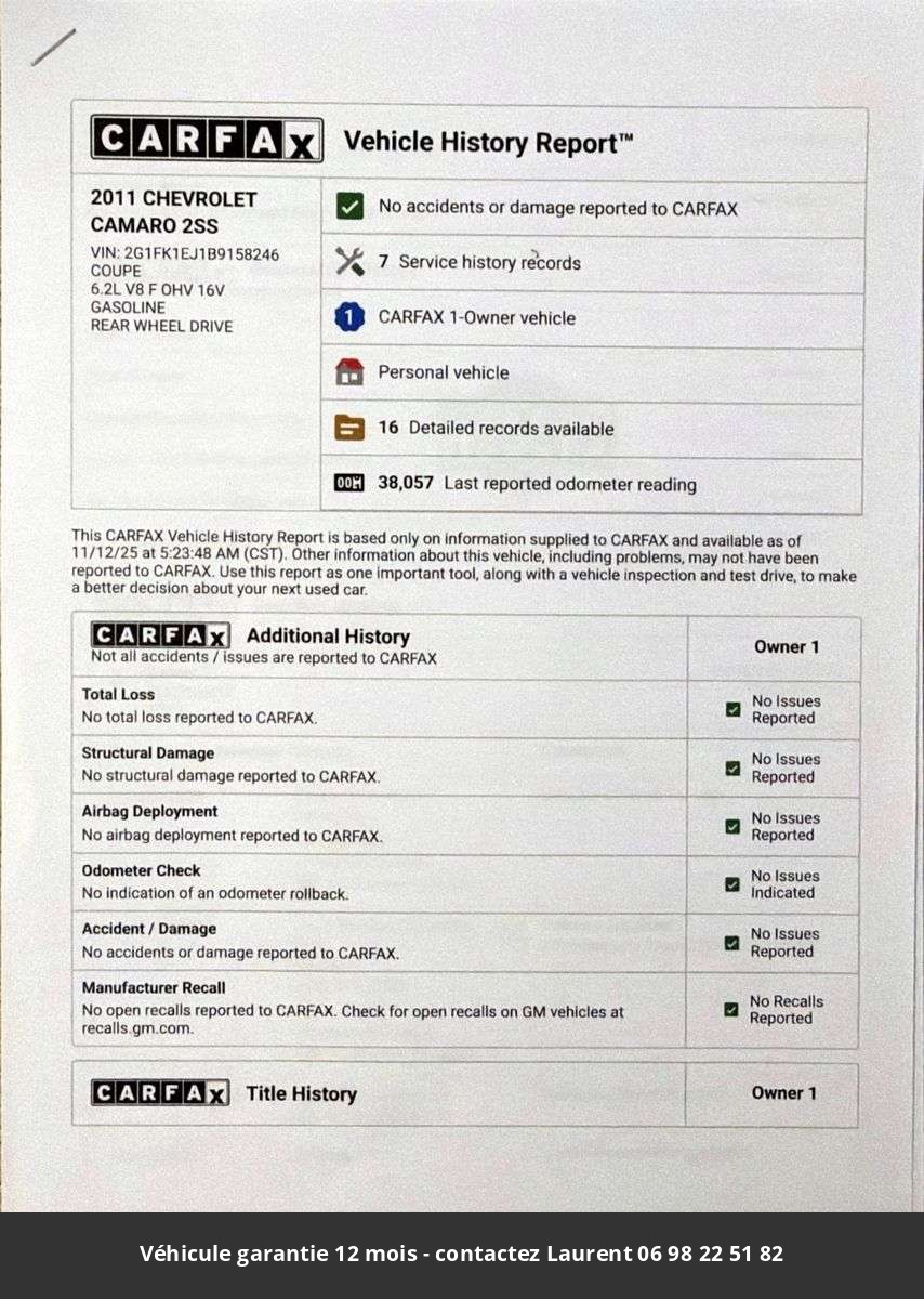 2011 Chevrolet Camaro SS V8 Tout compris hors homologation 4500e