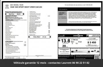 2021 Dodge RAM Sport Toit Ouvrant Night 12P 5.7L 4x4 Tout compris hors homologation 4500e