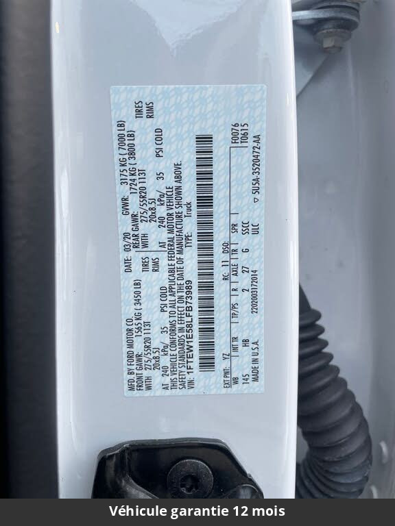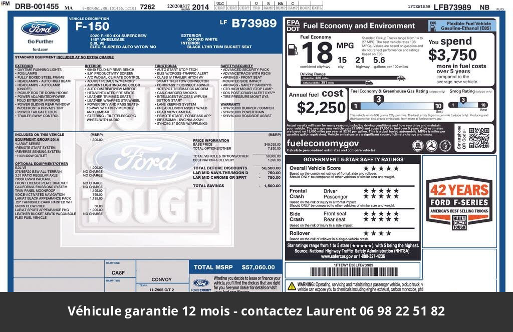 2020 Ford F150 Lariat Ethanol 5.0L SuperCrew 4x4 Tout compris hors homologation 4500e